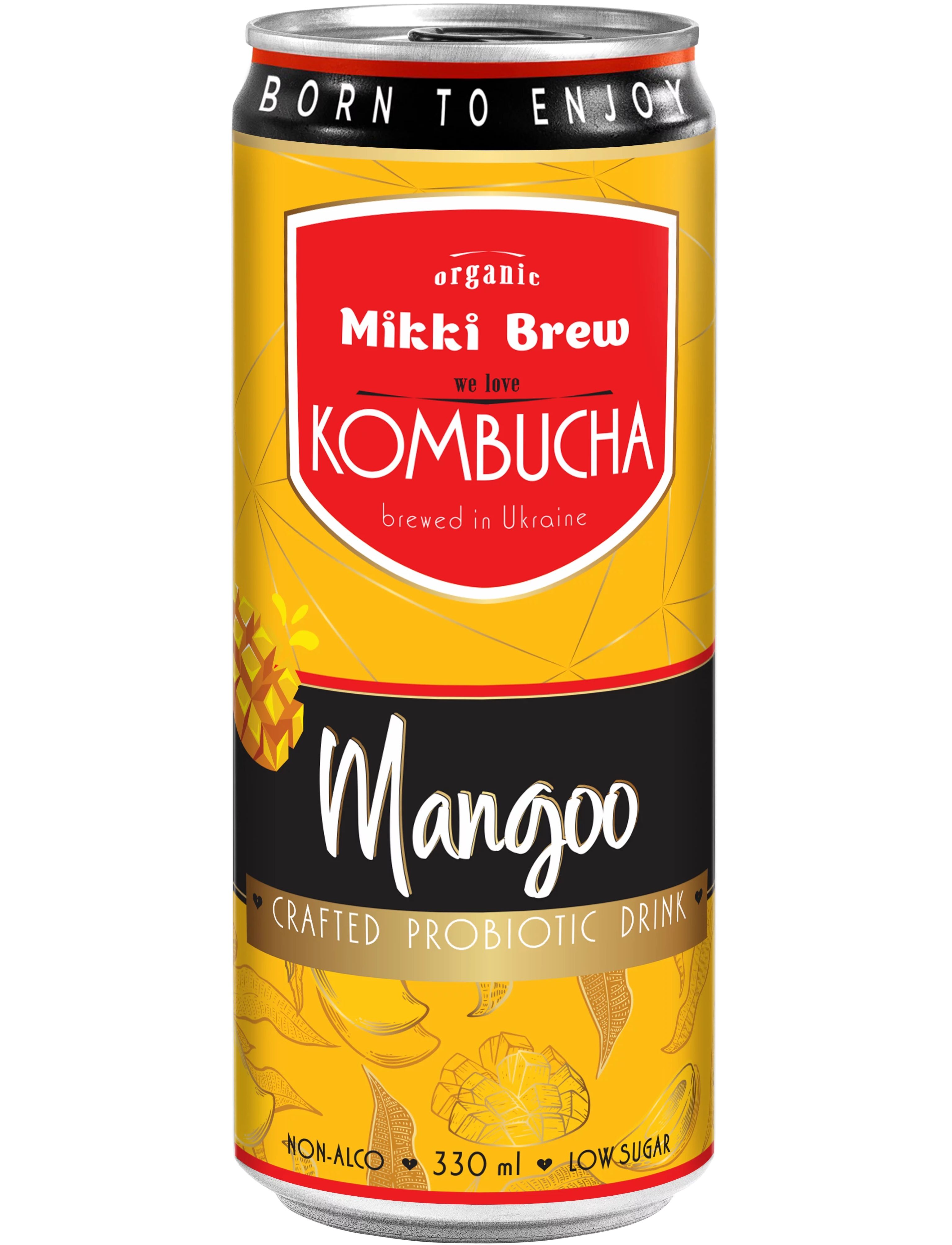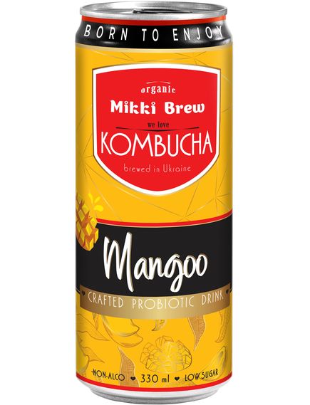 Mikki Brew Mangoo - це комбуча, представлена в зручній жестяній упаковці об'ємом 330 мл. Цей напій поєднує натуральний смак манго з освіжаючими нотками класичної комбучі.