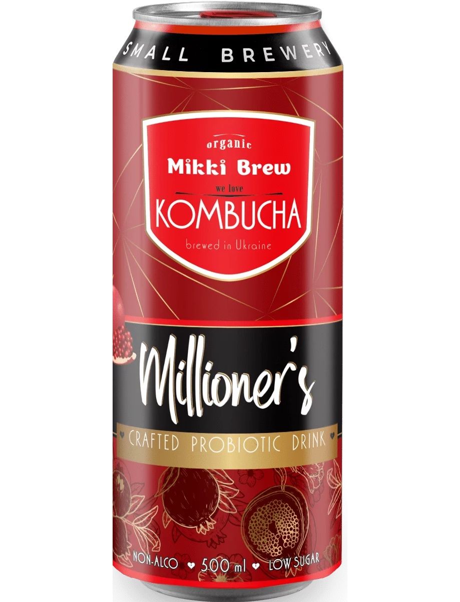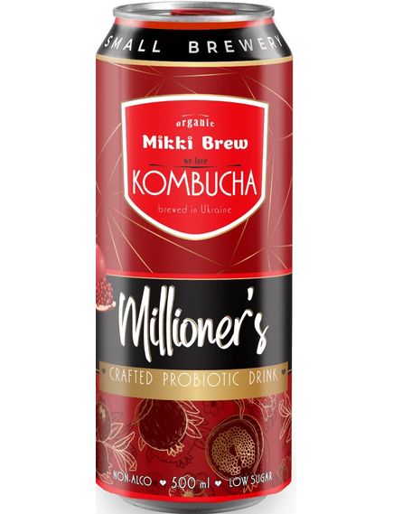 Mikki Brew Millioner's - це комбуча, представлена в зручній жестяній упаковці об'ємом 500 мл. Цей напій з гранатовим смаком відрізняється особливою вишуканістю та насиченістю аромату.
