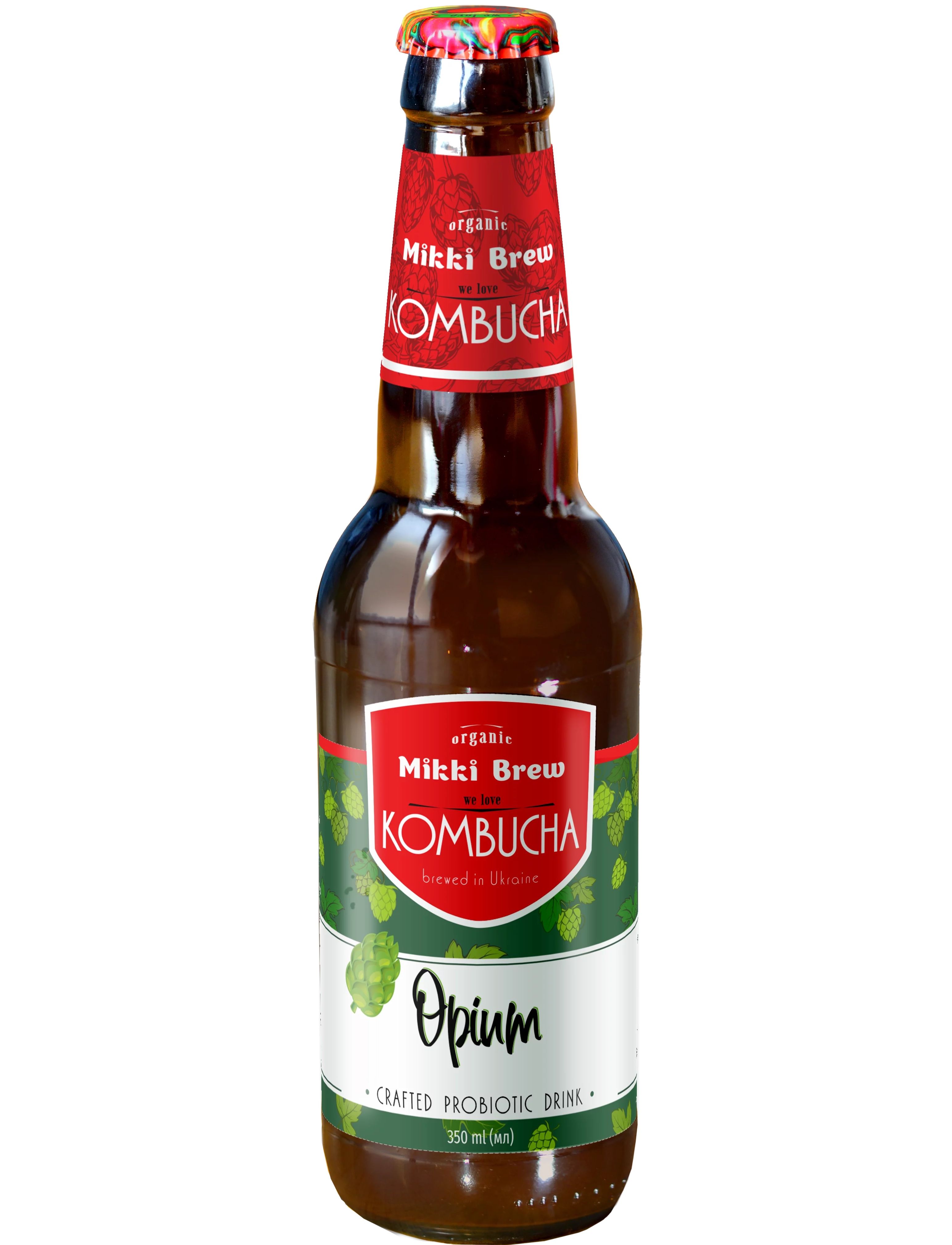 Mikki Brew Opium являє собою комбучу в зручній бутилці об'ємом 350 мл. Цей напій, безалкогольний та злегка газований, виготовлений із чайного гриба OPIUM, що створює унікальне поєднання солодкого та терпкого смаку.