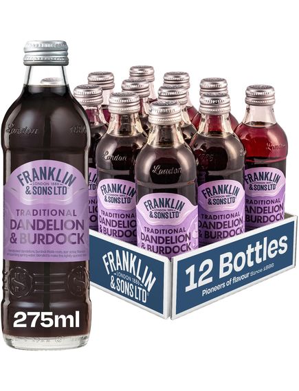 Традиційний безалкогольний напій Franklin & Sons з кульбабою та лопухом виготовлений з найкращих натуральних інгредієнтів. Ми поєднали англійську кульбабу, коріння лопуха, англійський цукровий буряк та газовану воду, щоб створити ідеальний безалкогольний напій для дорослих на будь-яку подію.