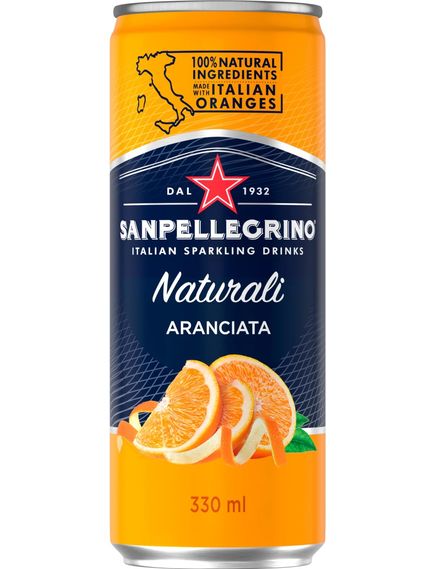 У банці Aranciata Sanpellegrino ви знайдете весь аромат свіжозібраних стиглих італійських апельсинів, унікальний і автентичний смак завдяки 100% натуральним інгредієнтам. Свіжа та обволікаюча ароматична гама поведе вас у чуттєву подорож усіма нюансами Середземномор’я.