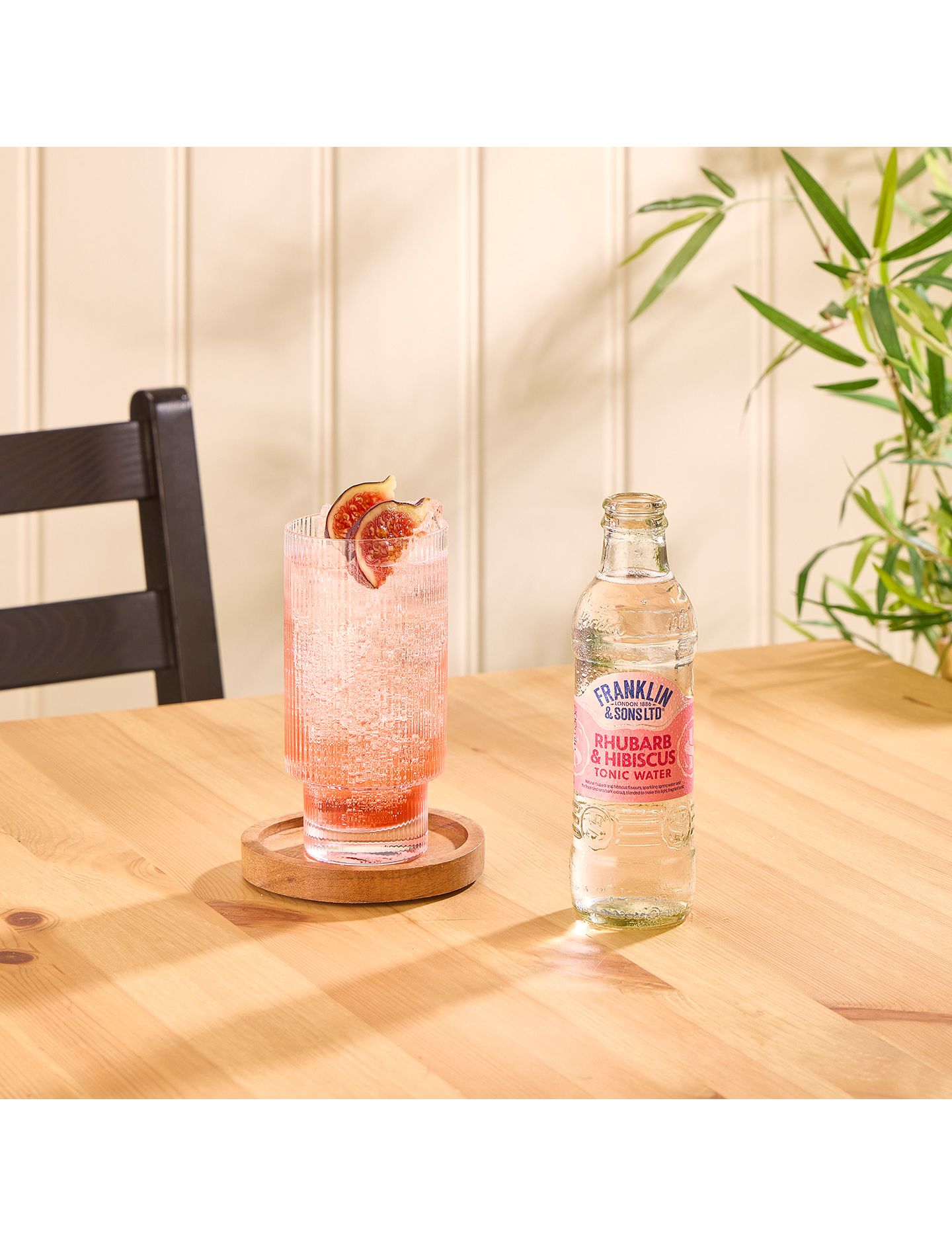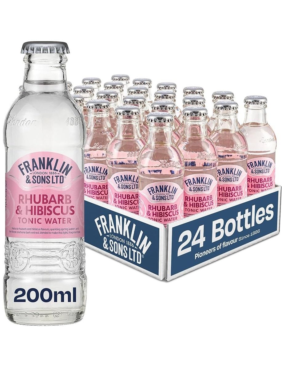 Тонізуюча вода Franklin & Sons з ревенем та гібіскусом виготовлена з найкращих натуральних інгредієнтів, поєднуючи терпкий ревінь та ароматний гібіскус з газованою водою та екстрактом кори хінного дерева, що створює ідеальний міксер для будь-якого міцного напою чи коктейлю.
