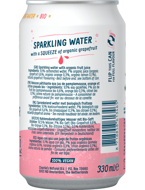 Charlie's Вода мінеральна газована з соком Грейпфруту органічна 330 мл