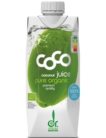 Цей сік – справді враження. Основні поживні речовини, без жиру. А доктор Антоніо Мартінс виробляє сік із молодих кокосових горіхів. Вироблено відповідно до органічних стандартів з ретельно відібраних плантацій.
