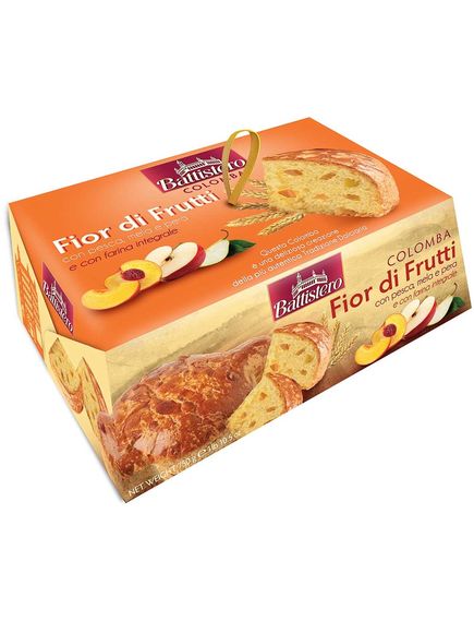 «Туттіфрутті» Коломба від BATTISTERO характеризується вишуканим поєднанням натуральних інгредієнтів: яблука, груші, персика, доповнених тістом, виготовленим з цільнозернового борошна.