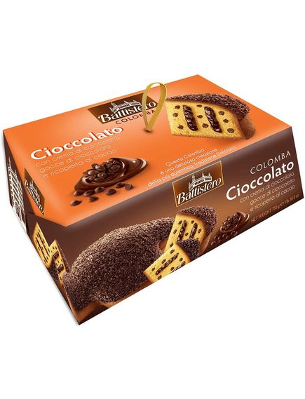 Найкласичніша кондитерська виріб від Colomba. Збагачена шоколадними краплями та вершками, покрита какао та прикрашена шматочками шоколаду.