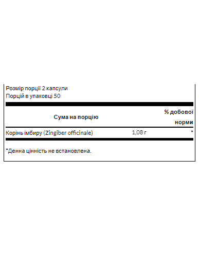 Наступного разу, коли ви відчуєте, що у вашому шлунку метелик, заспокойте нудоту за допомогою Swanson Full Spectrum Ginger Root. Корінь імбиру, широко відомий як кулінарна приправа, є відмінним заспокійливим засобом для шлунка та тоніком для системи травлення. Кожна порція із 2 капсул містить 1,08 г кореня імбиру.