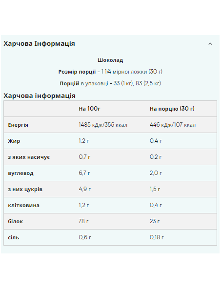Штрихкод: 5055534319680Що таке міцелярний казеїн? Міцелярний казеїн – повільний білок найвищої якості, отриманий із молока. За допомогою процесу ультрафільтрації при низькій температурі кінцевий інгредієнт зберігає свої поживні якості та функціональність, якщо порівнювати його з кислотним казеїном або казеїнатами. Переваги міцелярного казеїну? Міцелярний казеїн повільно засвоюється у шлунку, що дозволяє м'язам плавно та поступово отримувати амінокислоти протягом тривалого часу. Ці властивості роблять міцелярний казеїн ідеальною білковою добавкою для використання між їдою і перед сном. Під час сну організм отримує мало поживних речовин, оскільки вживати їжу непрактично. Однак унаслідок того, що міцелярний казеїн надає постійне забезпечення білком, це дозволяє організму запобігти руйнуванню м'язової тканини під час сну. Міцелярний казеїн має відмінний профіль амінокислот, з досить високим вмістом амінокислот з розгалуженими ланцюжками (BCAA). У ньому також дуже мало жиру, але при цьому він є хорошим джерелом отримання кальцію. Кому підходить? Міцелярний казеїн ідеально підходить для тих, хто займається довгостроковою фізичною підготовкою, де отримання правильного дієтичного балансу є необхідним. Ключові переваги Білок повільного розщеплення Багатий амінокислотами Високий вміст білка при низькому вмісті жирів та вуглеводів На 100г: Енергетична цінність (кДж/ккал): 1518/358 Жиров: 1.5г з них насичених: 0.8г Вуглеводів. г Білка: 80г Сіль: 0.4г У кожній порції (30г) міститься: Енергетична цінність (кДж/ккал): 455/107 Жиров: 0.5г з них насичених: 0.2г Вуглеводів: 1.8г з яких цукор: 1.2г Білка: 24г Сіль: 0.1г