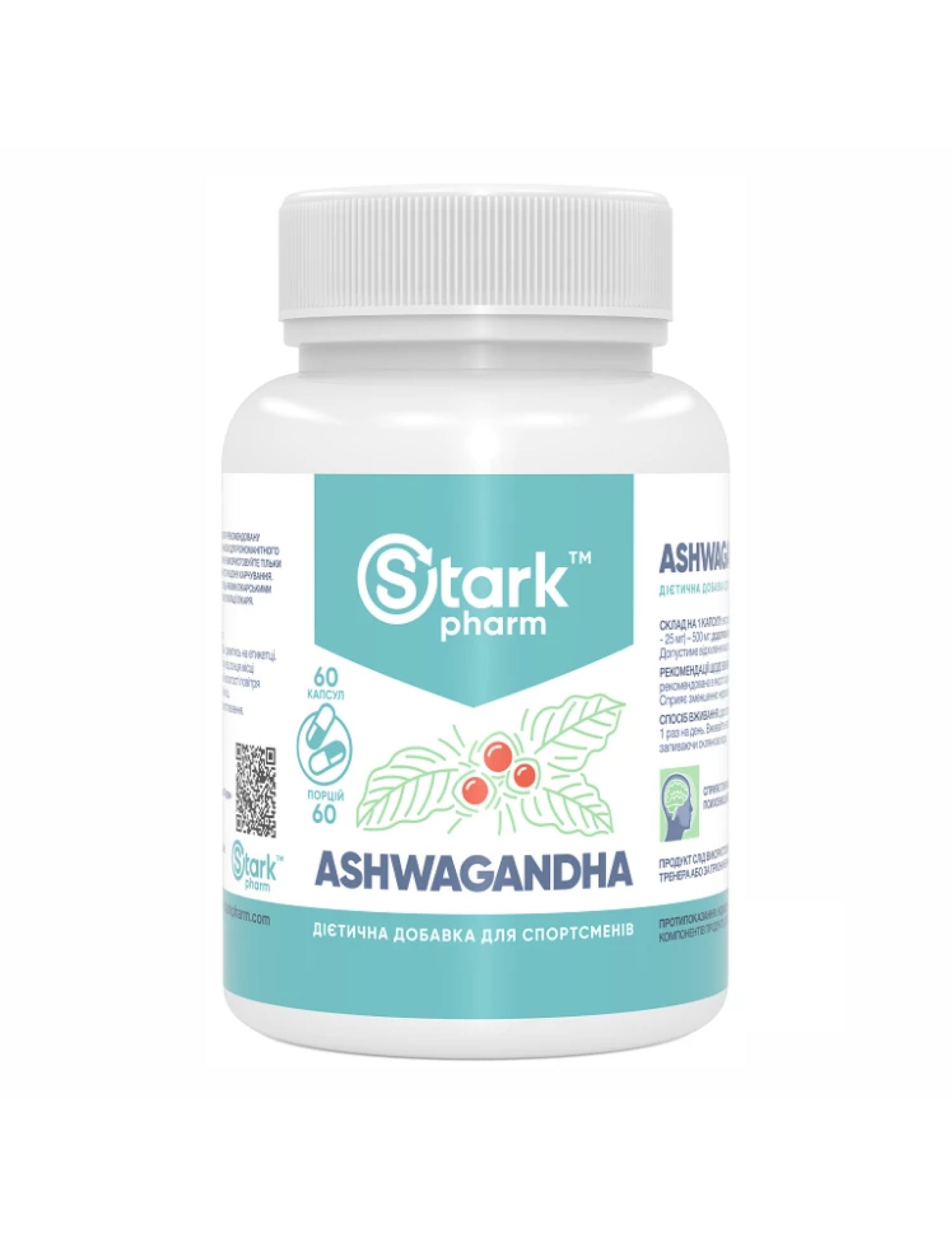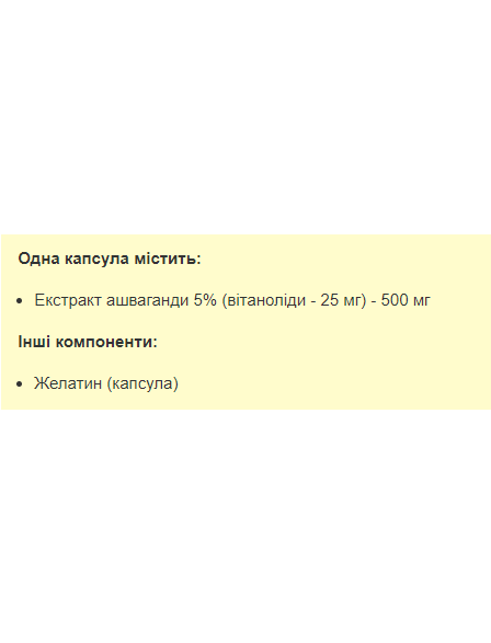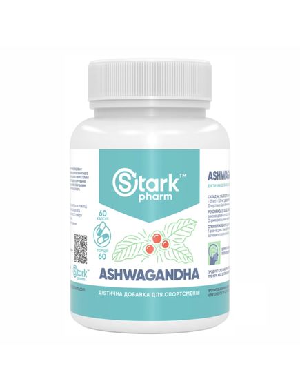 Харчова добавка Stark Pharm - Stark Ashwagandha містить 5% екстракту ашвагандхи, який використовується як тонізуючий та адаптогенний засіб.