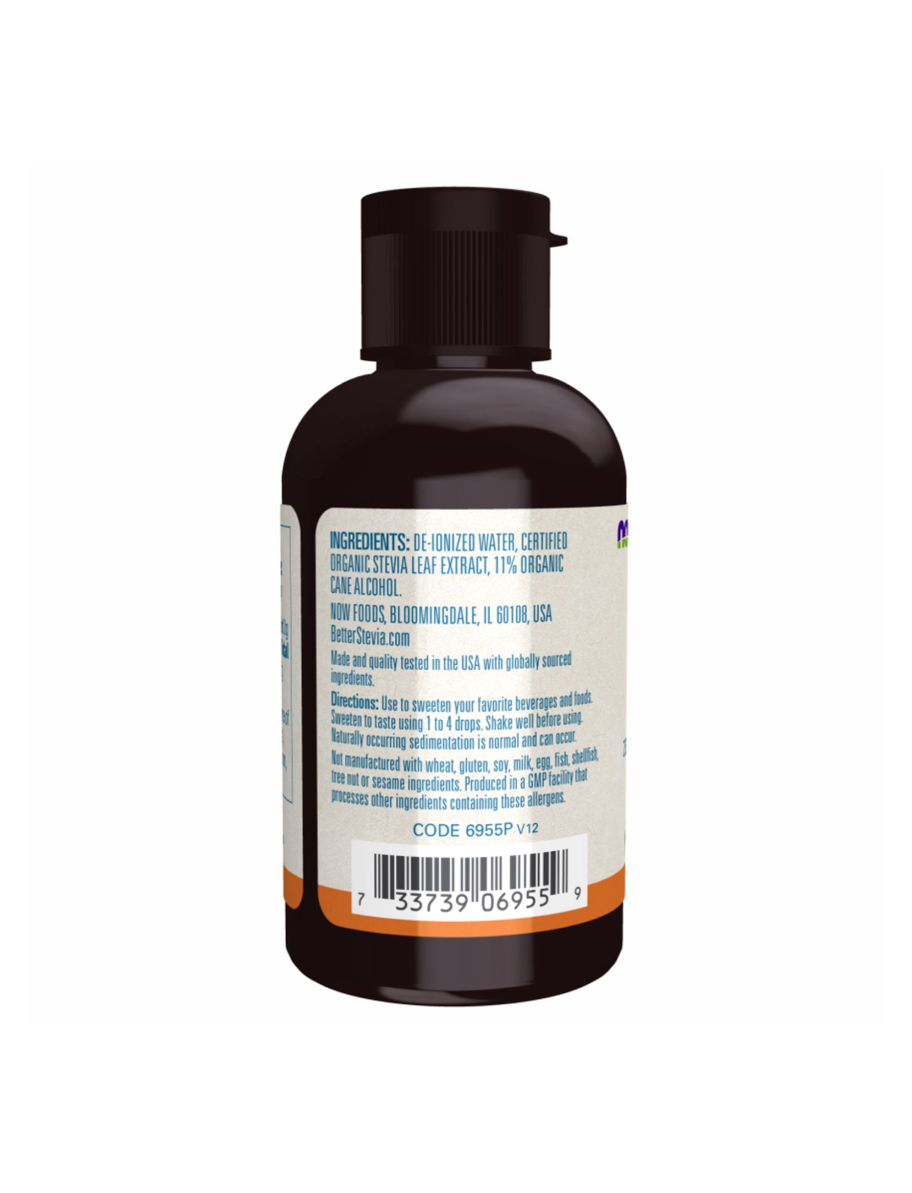 Деіонізована вода, сертифікований органічний екстракт листя стевії, 11 % органічного тростинного спирту.
