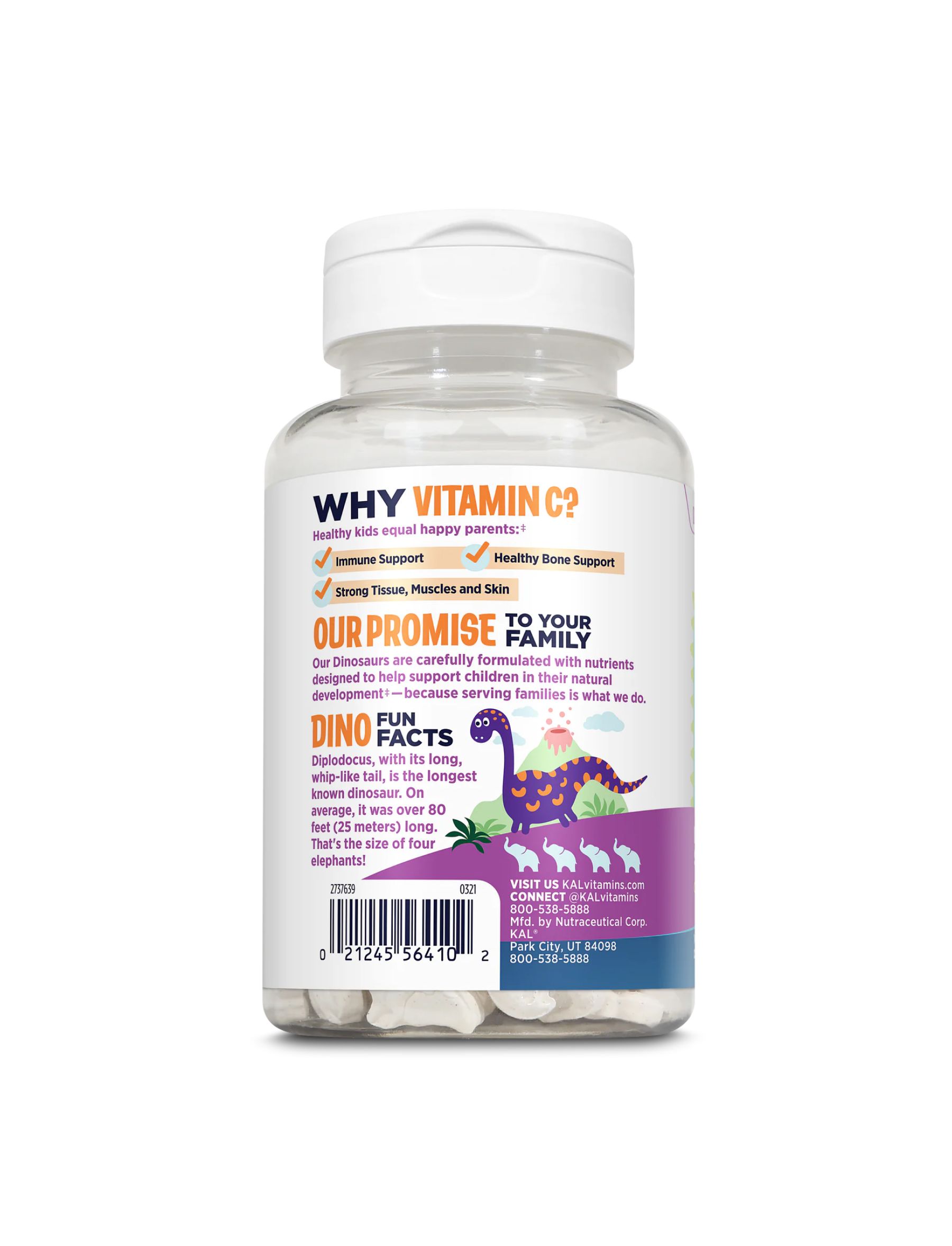 Як і всі продукти KAL, наші інгредієнти вітаміну C-Rex пройшли лабораторні перевірки на ефективність, чистоту та ідентичність – тому що батьки довіряють KAL, щоб забезпечити найкраще. KAL Vitamin C-Rex виготовляється з чистими смаками та інгредієнтами.