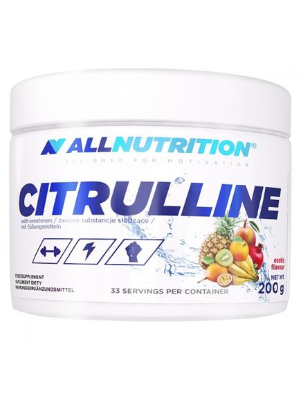 ALLNUTRITION CITRULLINE є комбінацією амінокислоти L-цитруліну і малату (яблучної кислоти). Цитрулін малат допомагає підтримувати рівень АТФ за рахунок зниження надлишку лактату для кращого відновлення м'язів після тренування.
