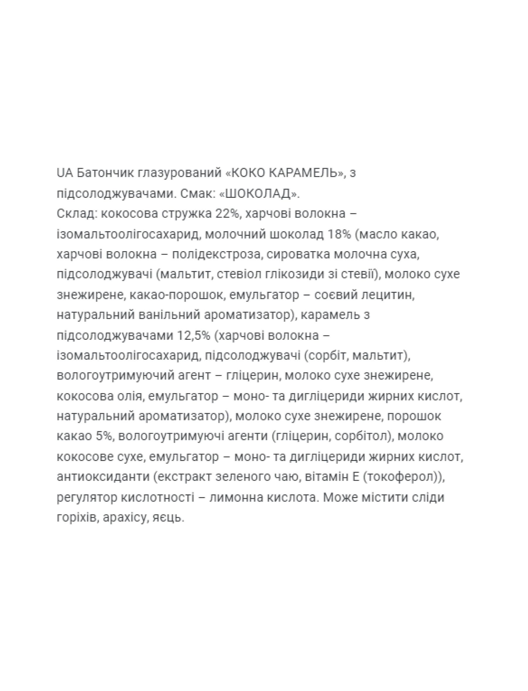 Неймовірні кокосові батончики без цукру, вкриті гладенькою глазур’ю та з  ніжною карамельною начинкою всередині. Відчуйте справжній тропічний рай в кожному шматочку екзотичної насолоди батончика Cococaramel. Цей батончик - ідеальний для тих, хто хоче насолодитися солодким перекусом, при цьому з користю для організма.