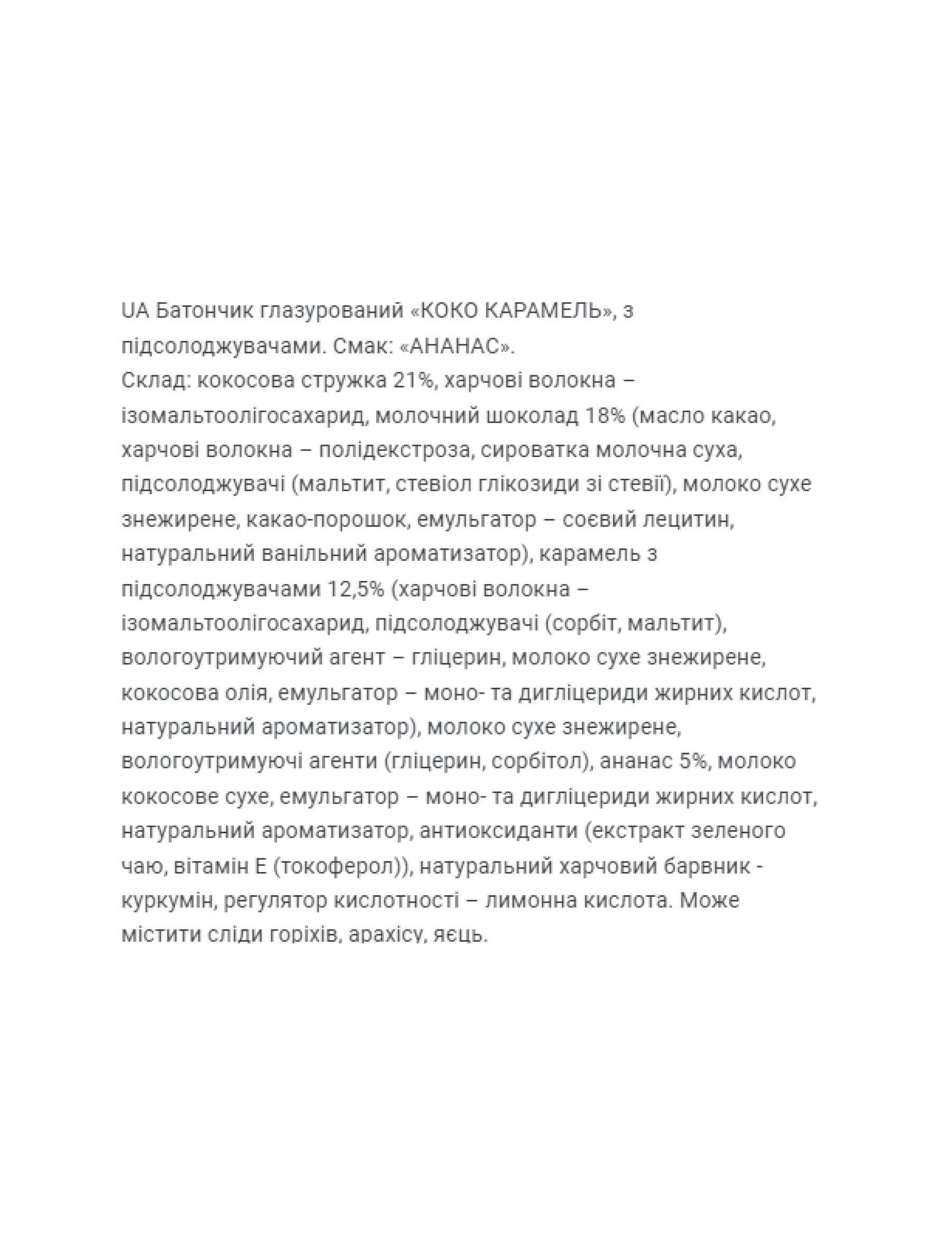 Неймовірні кокосові батончики без цукру, вкриті гладенькою глазур’ю та з ніжною карамельною начинкою всередині. Відчуйте справжній тропічний рай в кожному шматочку екзотичної насолоди батончика Cococaramel. Цей батончик - ідеальний для тих, хто хоче насолодитися солодким перекусом, при цьому з користю для організма.