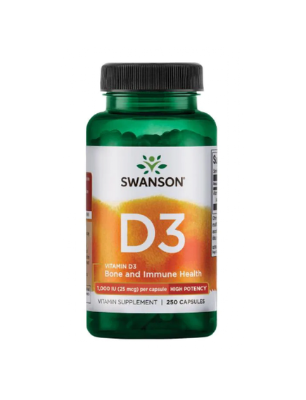 Swanson Вітамін D3 є важливим вітаміном для підтримки кісток, що ефективно засвоює кальцій в організмі. Організм виробляє певну кількість вітаміну D самостійно, коли піддається впливу сонячного світла, але для людей, що живуть у північних широтах, де перебування на сонці в зимовий час обмежене, природного вітаміну D в організмі часто може бути недостатньо. Наші капсули High Potency Vitamin D3 вирішують цю проблему, забезпечуючи вражаючі 25 мкг (1000 МО) вітаміну D3, найбільш біологічно активної фракції вітаміну D.