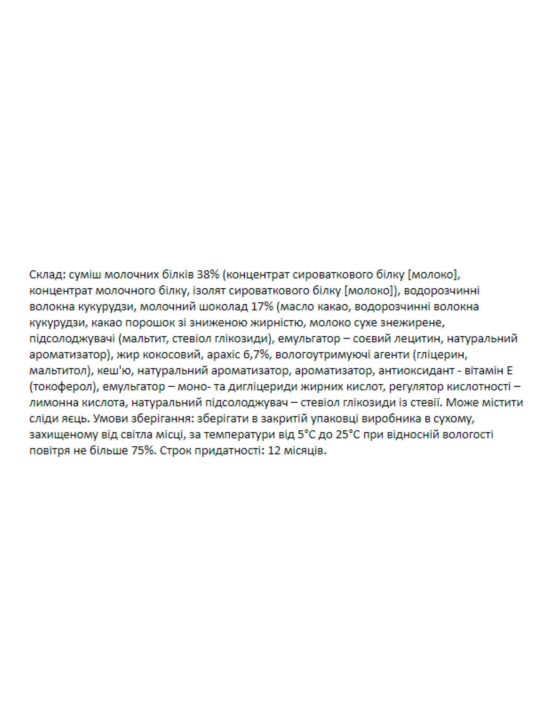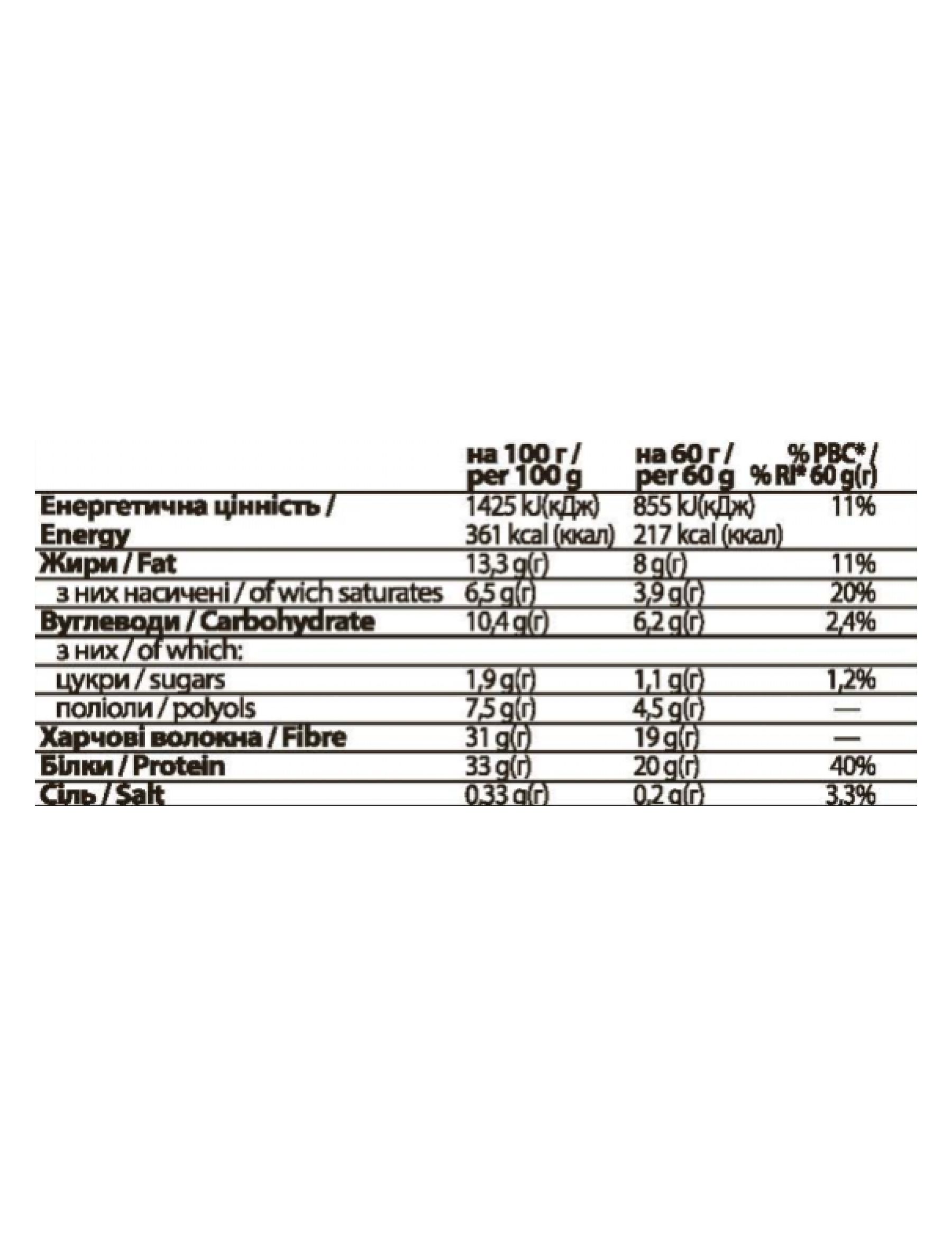 високий вміст протеїну - 20 грамів білка на кожен 60-грамовий батончик!