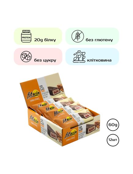 FitWin - це справжнє втілення смаку та користі для вас. З його густою глазур'ю та начинкою всередині, він подарує вам вибух нових відчуттів, забезпечуючи енергію на весь день. Цей 60-грамовий батончик FitWin приносить вам вражаючі 20 грам білка, але при цьому абсолютно без цукру.