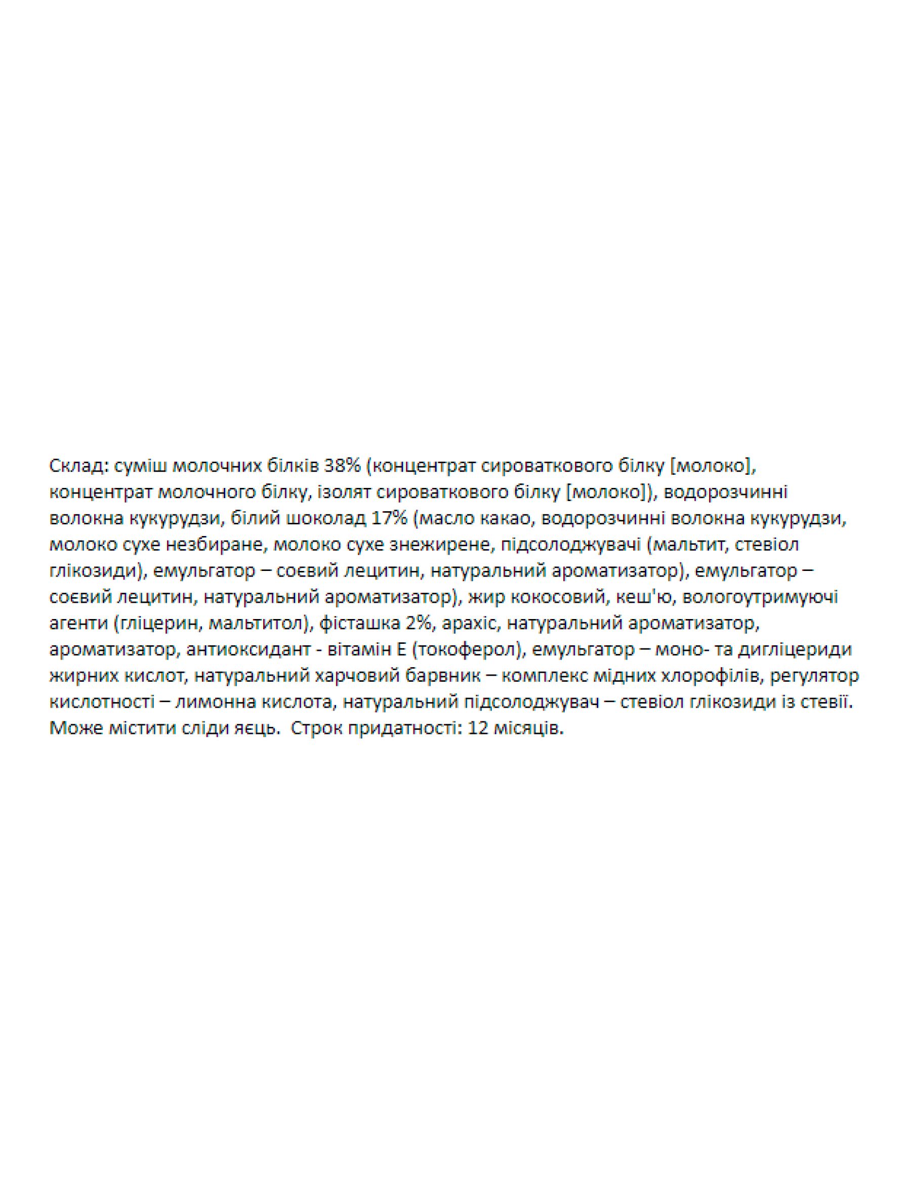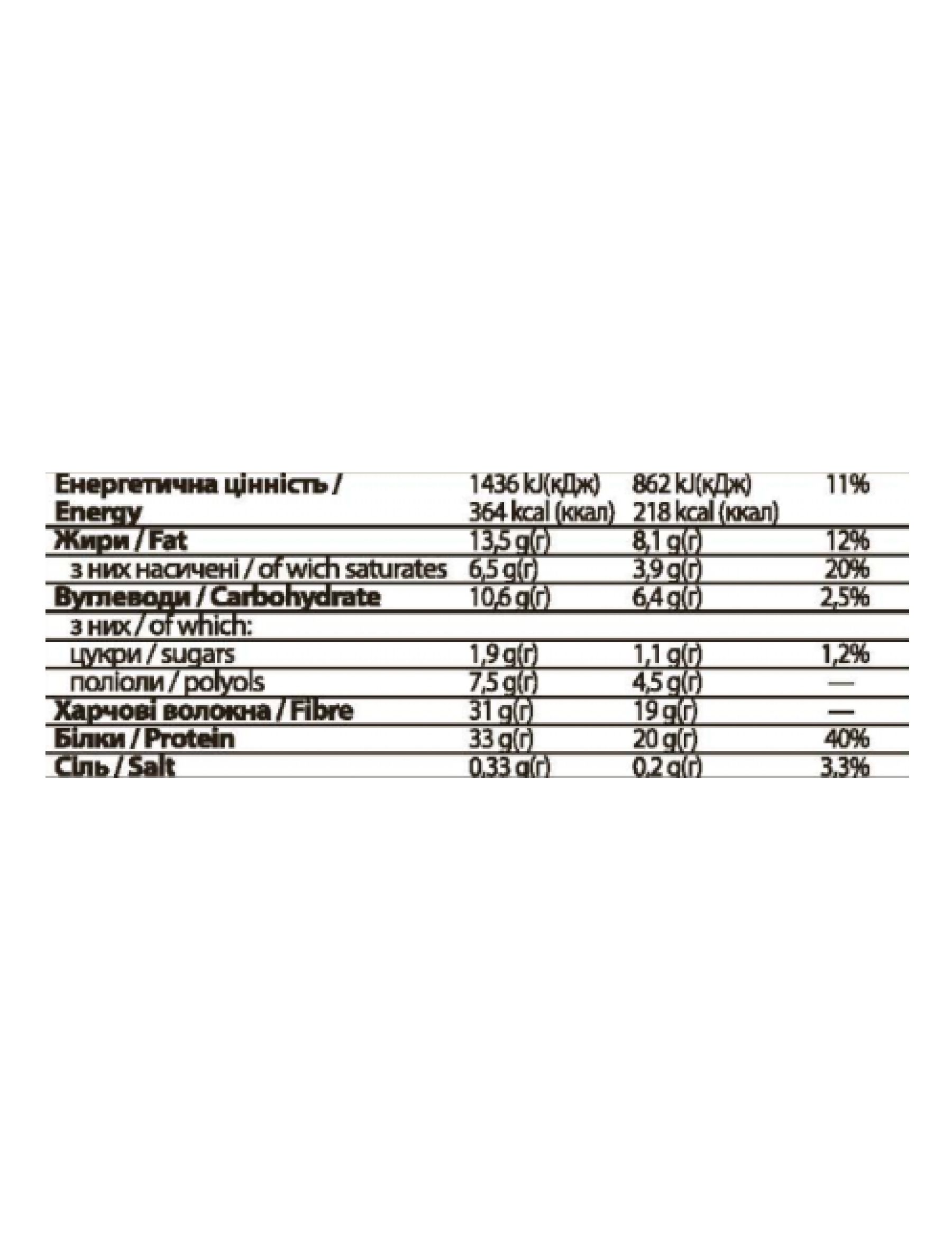 високий вміст протеїну - 20 грамів білка на кожен 60-грамовий батончик!