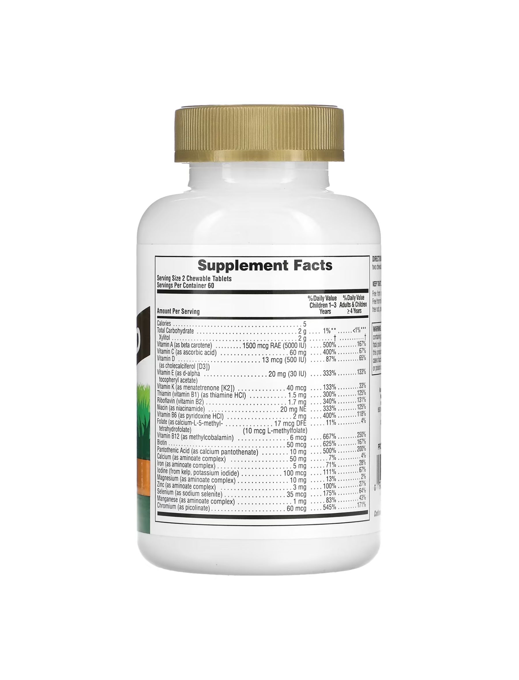 Дитячна жувальна антиоксидантна добавка містить концентрати цілісних продуктів, не містить глютену, не спричиняє алергічних реакцій і є вегетаріанським продуктом. Ця поживна підтримка призначена для поліпшення загального здоров'я. Дитячі жувальні таблетки для підвищення імунітету Animal Parade містять ефективні дози вітамінів A, C і E, які зміцнюють імунітет, а також цинк для підвищення імунної захисту. Ці таблетки у формі звірів з тропічними ягодами знайдуть вподобання у вашої дитини завдяки соковитому смаку. Унікальна суміш цілісних рослин, таких як зелений чай і листя оливкового дерева, надає додаткової живильної підтримки для імунітету, а ацидофілус сприяє підтримці балансу травної системи та оптимальному засвоєнню поживних речовин. Рекомендується давати дітям від 2 років по 2 жувальні таблетки на день як харчову добавку. Склад продукту включає фруктозу, натуральні ароматизатори, мікрокристалічну целюлозу, стеаринову кислоту, магнію стеарат, лимонну кислоту, порошок з кореня буряка (як натуральний барвник), аскорбат натрію, мальтодекстрин, стевію і діоксид кремнію. Препарат не містить штучних барвників та консервантів, а також загальновідомих алергенів, таких як дріжджі, пшениця, соя та молоко. Для зберігання слід тримати у щільно закритій упаковці в сухому та прохолодному місці і поза досяжністю дітей.