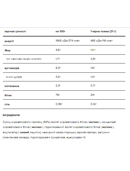 24 г протеїну, 5 м ВСАА та 4 г глютаміна в кожній порції