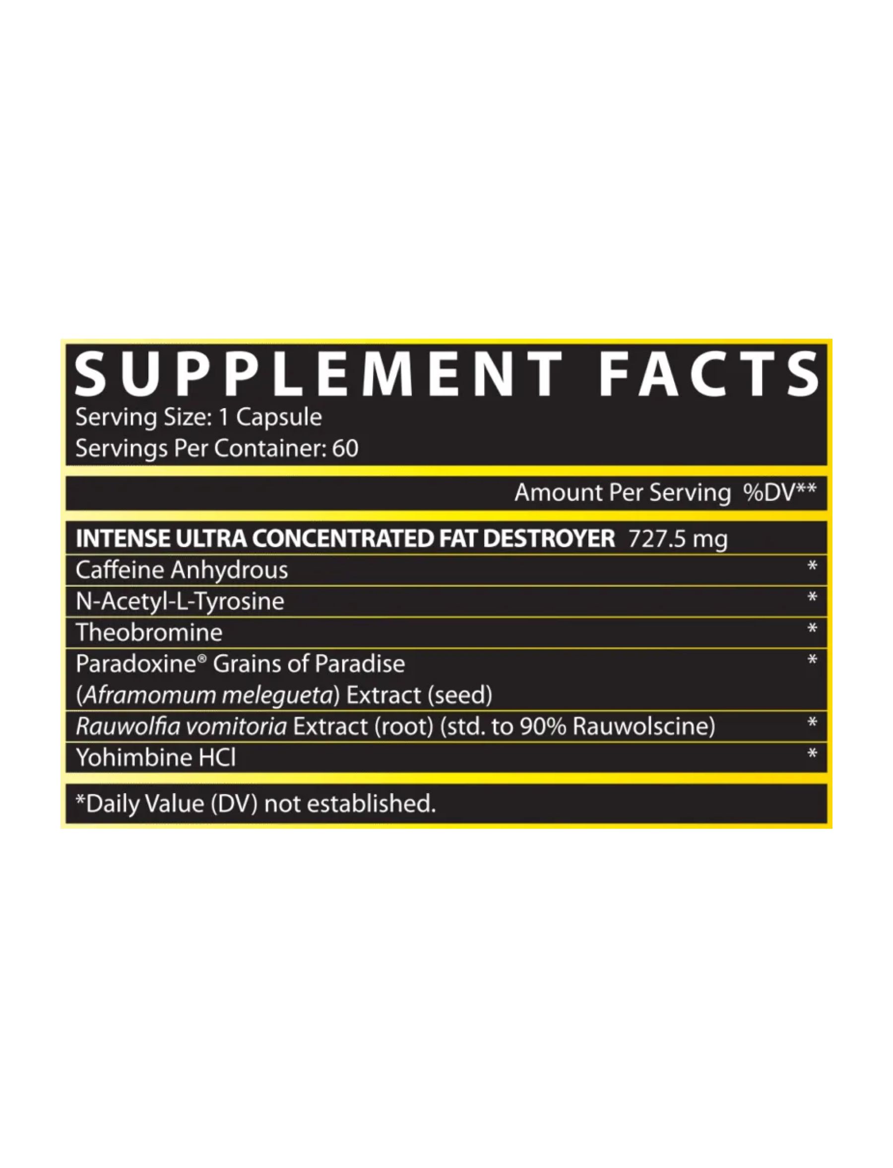 LIPO-6 BLACK INTENSE UC - це розпечений до червоного термогенний спальник жиру, який дає додатковий енергетичний заряд, від якого ви збожеволієте. Якщо ви шукаєте жироспалювач, який допомагає прискорити метаболізм, змушує вас потіти та дає серйозний заряд енергії, вам потрібно спробувати LIPO-6 BLACK INTENSE UC. LIPO-6 BLACK INTENSE UC не для людей зі слабкими нервами і безумовно не для новачків. Це для тих, хто спробував їх і застряг. Відчуй це за лічені хвилини. Ефект від LIPO-6 BLACK INTENSE UC можна відчути вже за кілька хвилин. Все, що вам знадобиться, це одна капсула на порцію. Чекайте серйозного удару по обличчю енергетичним стусаном і сильним потовиділенням. Ви літатимете, як енергетичний кролик.