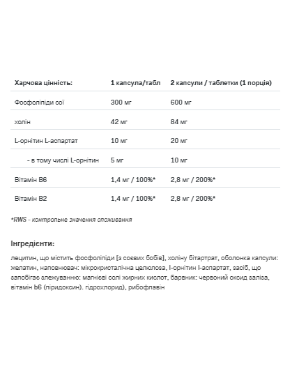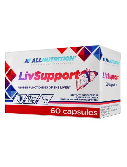 LIVSUPPORT - це біологічно активна добавка, призначена для фізично активних людей, на основі соєвих фосфоліпідів, холіну, L-орнітину, L-аспартату, вітаміну B6 та рибофлавіну.