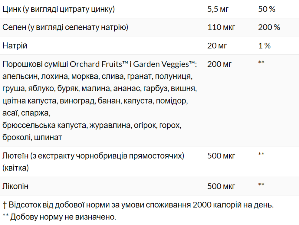 - 15 вітамінів і мікроелементів з лютеїном і лікопіном