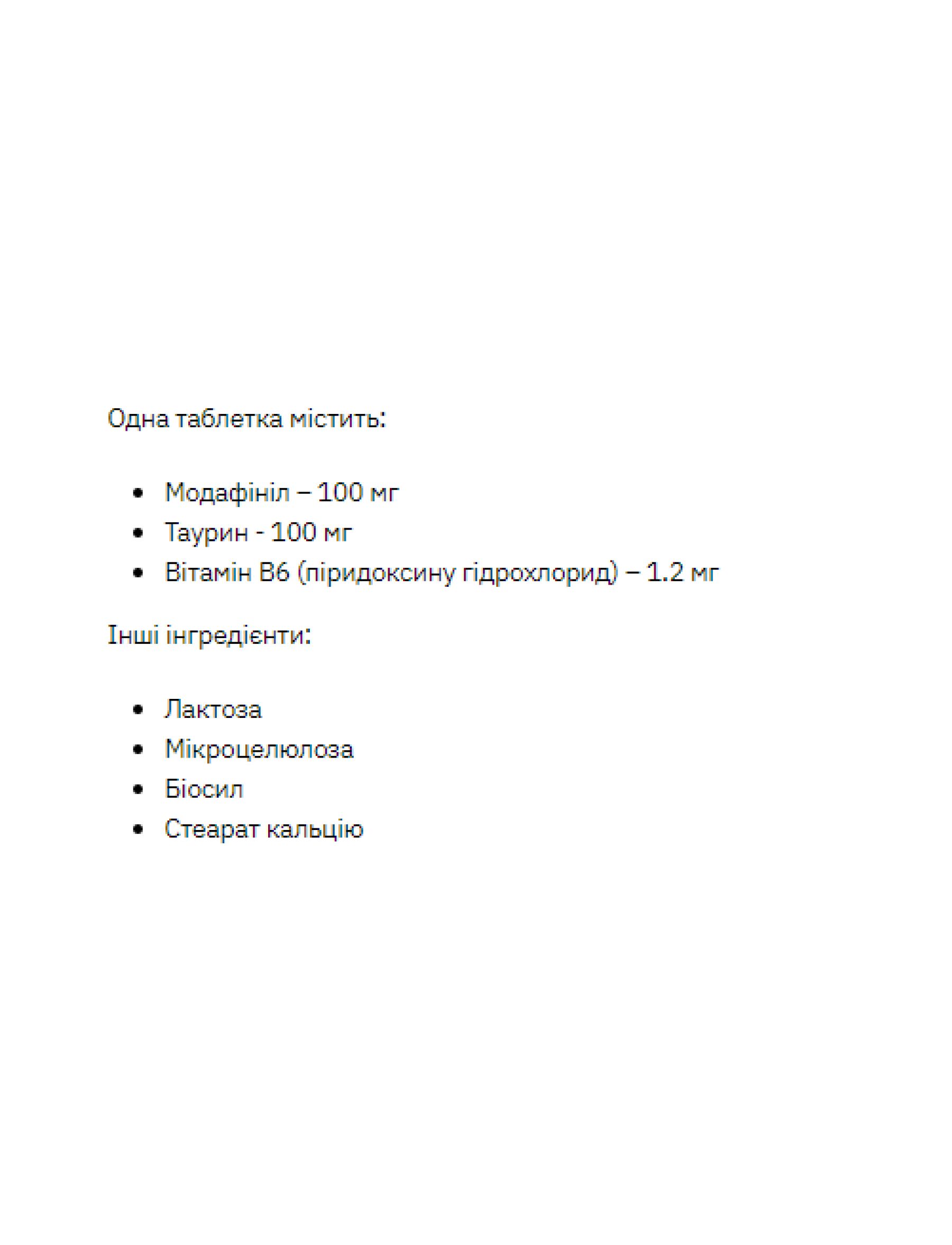Modafinil необхідний тоді, коли життєва ситуація вимагає найвищої концентрації та уваги протягом більш ніж звичайний активний день. Він утримує вас у стані найвищої енергії протягом доби та більше, допомагає контролювати все навколо та відчувати приголомшливу впевненість у собі від того, що ви дійсно можете володіти ситуацією, тоді коли інші валяться з ніг від утоми.