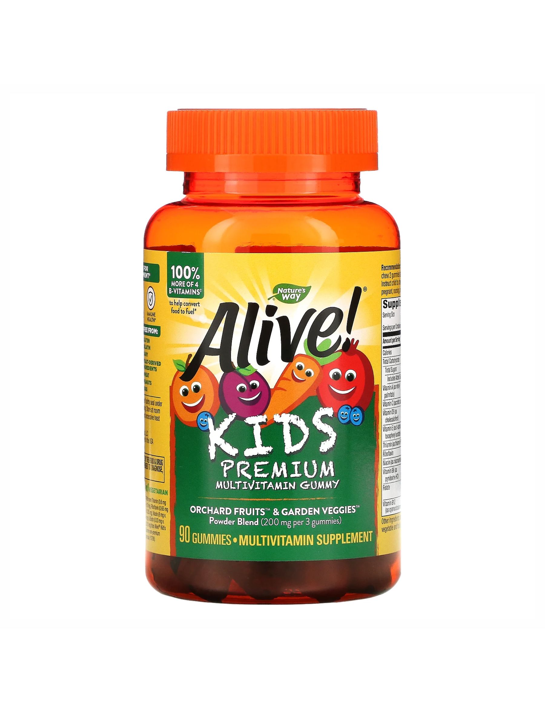 ‡ Містить більше тіаміну (0,6 мг замість 0,3 мг), рибофлавіну (0,65 мг замість 0,325 мг), ніацину (8 мг замість 4 мг), біотину (0,03 мг замість 0,015 мг), ніж жувальні цукерки для дітей Alive!® не преміальної якості (15788).