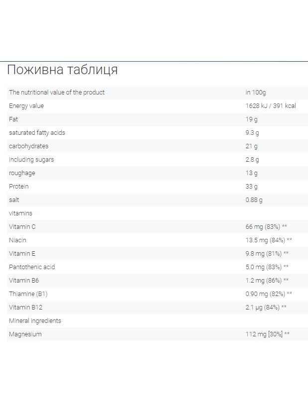 Чи знаєте ви, що два білкові білки PROTEIN 33% задовольняють понад 80% RWS (Reference Intake Value) для вітамінів, які вони зберігають?