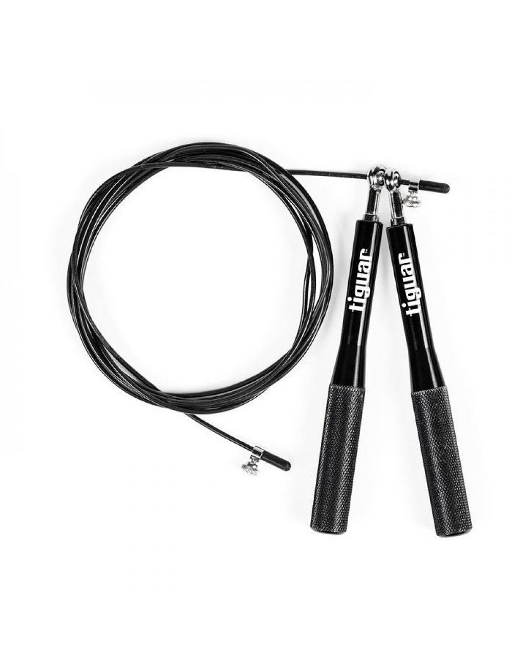 Швидкісна мотузка tiguar — це професійний і надійний продукт, який добре підходить для різних видів тренувань. Може використовуватися під час кардіо- і крос-треніровок, а також професійними спортсменами. Конструкція каната дозволяє досягти високої швидкості за рахунок системи шарикоподшипников і втулки. Продукт має ручну регуляцію довжини веревки, що допомагає користувачам підлаштуватися під свій ріст і підвищує комфорт тренування. Розміри і кольори включають: сталевий трос: довжина 300 см, алюмінієві ручки: довжина 18 см – чорний.
