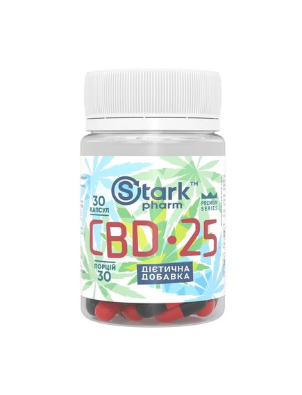 Харчова добавка Stark Pharm - Stark CBD містить канабідіол - природний екстракт канабісу або звичайних конопель. Добавки з канабідіолом (більш відомий під назвою CBD (КБД) містять в складі непсихотропний екстракт канабісу, якиї жодним чином не впливає на психіку людини та не належить до групи наркотичних речовин. Натуральний екстракт конопель допомагає покращити функціонування імунної системи, загальне самопочуття та наповнити життєвими силами.