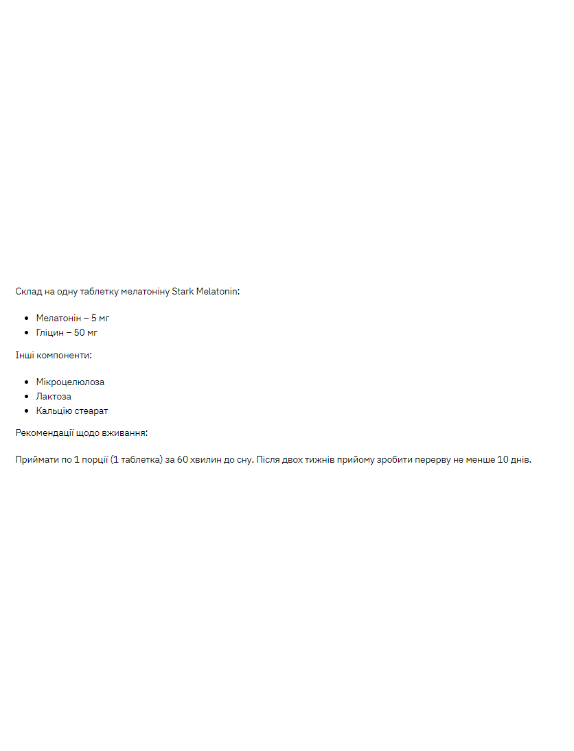 Склад на одну таблетку мелатоніну Stark Melatonin: