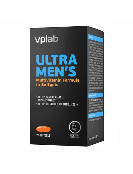 Унікальна мультивітамінна формула Vplab Ultra для чоловіків, що містить ключові поживні речовини, оптимізована для чоловічого здоров’я, працездатності та життєвої сили.