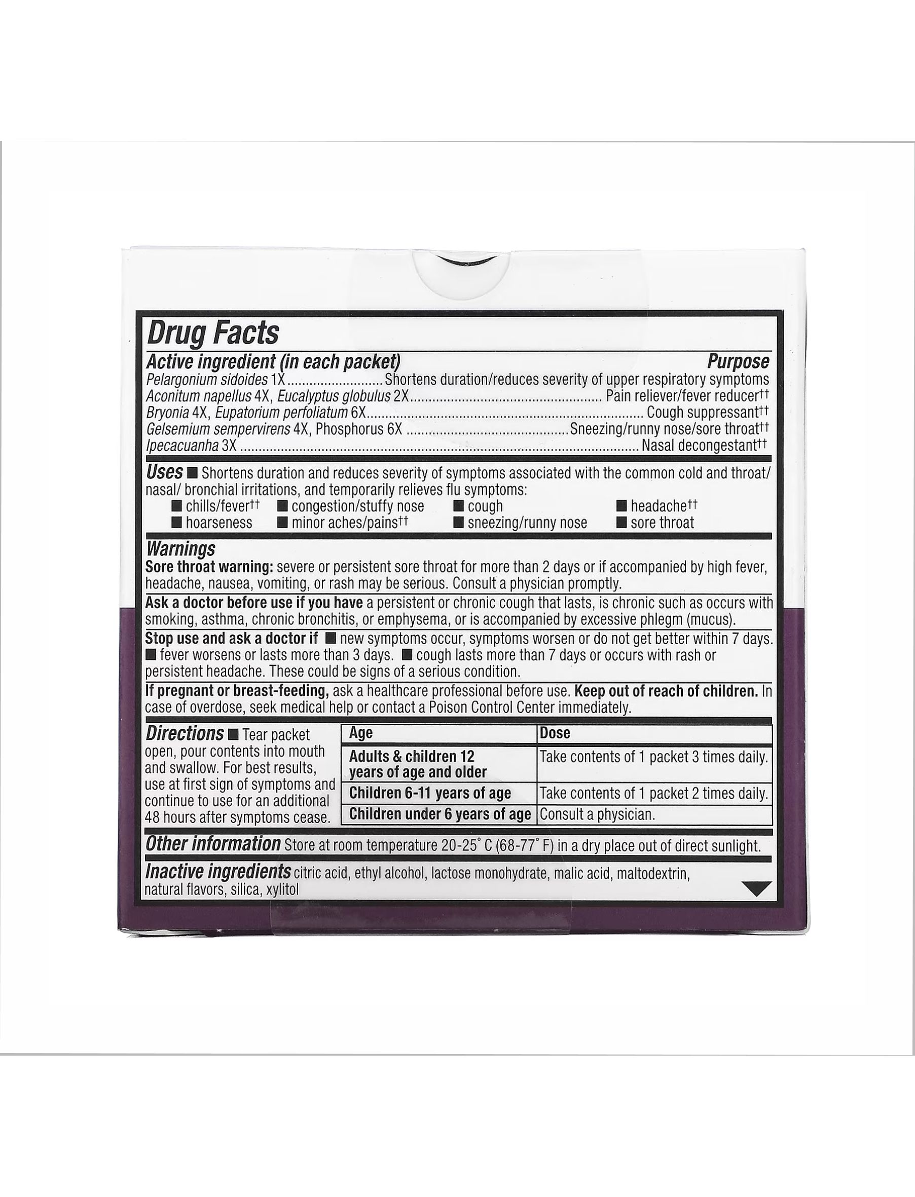 Розірвіть пакет, вилийте його вміст у рот і проковтніть. Для досягнення найкращих результатів використовуйте при перших ознаках симптомів і продовжуйте використовувати ще 48 годин після припинення симптомів