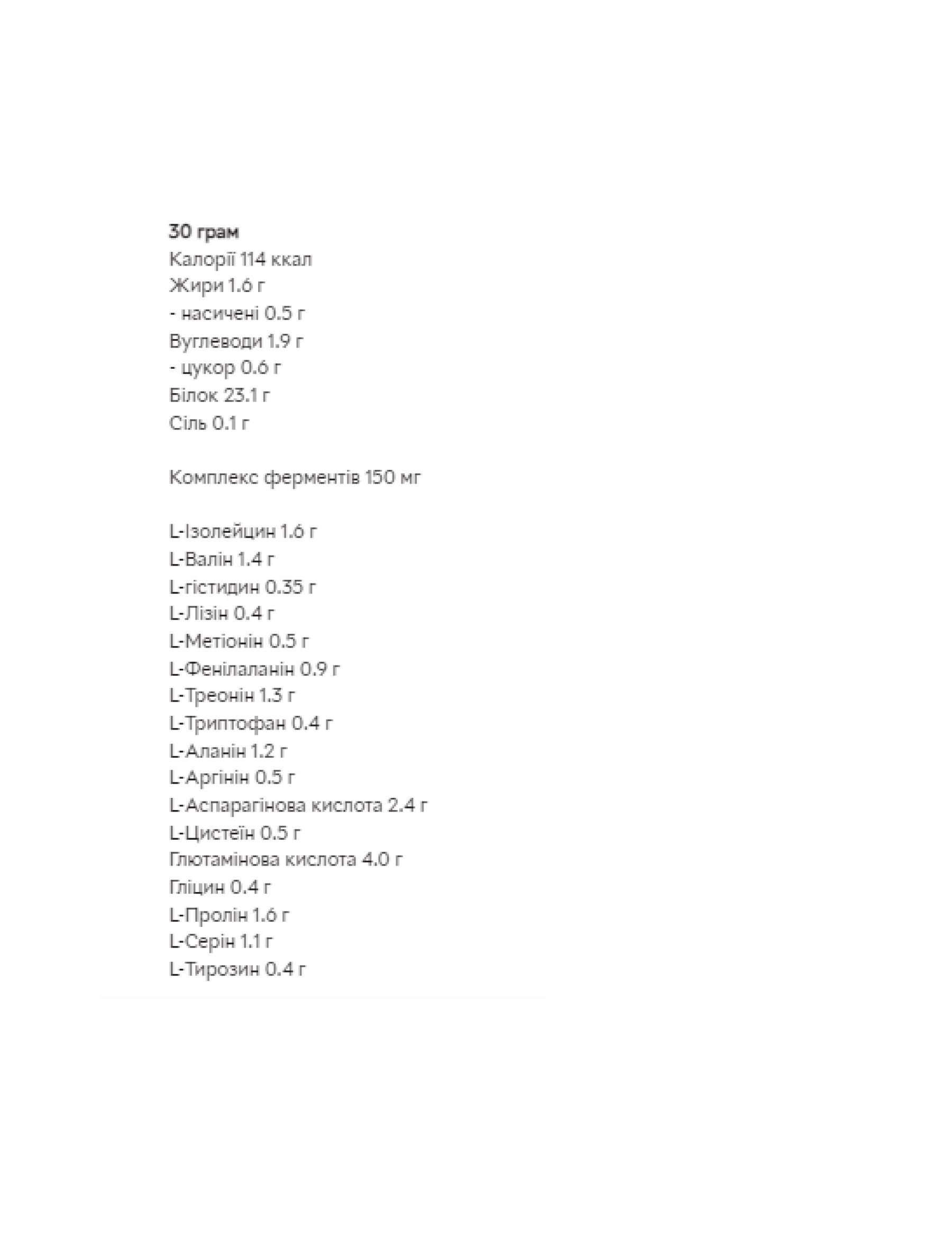 Високий вміст білка (77%): сприяє ефективному нарощуванню та відновленню м'язової тканини.