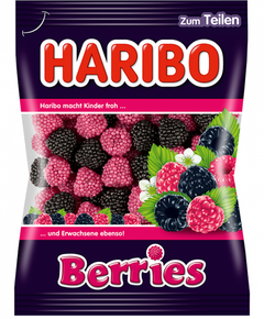 Haribo International, Германия / Berries / желейные мармеладные конфеты в форме ягод малины и ежевики / обладают насыщенным ягодным вкусом, имеют хрустящую сахарную оболочку и мягкую текстуру внутри / вариант сладкого лакомства для детей и взрослых, а также украшения разнообразной выпечки: кексов, тортов и бисквитов / удобный формат упаковки для поездок и отдыха / 175 г