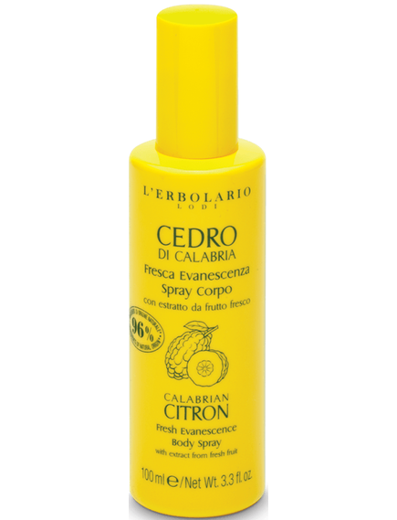 Іскриста фруктова лінія, яка підкреслює найкраще, що може запропонувати цей середземноморський цитрусовий фрукт. Наші лабораторії отримали два дорогоцінні активні інгредієнти зі свіжого кедра для краси шкіри та волосся : парфумований екстракт із тонізуючою силою та освіжаючу та пом’якшувальну ароматну воду. Цитрусові, які використовуються в нашій косметиці, походять від Consorzio del Cedro di Calabria , організації, яка сприяє вирощуванню кедра в Санта-Марія-дель-Чедро, італійському місті, відомому збиранням фруктів.