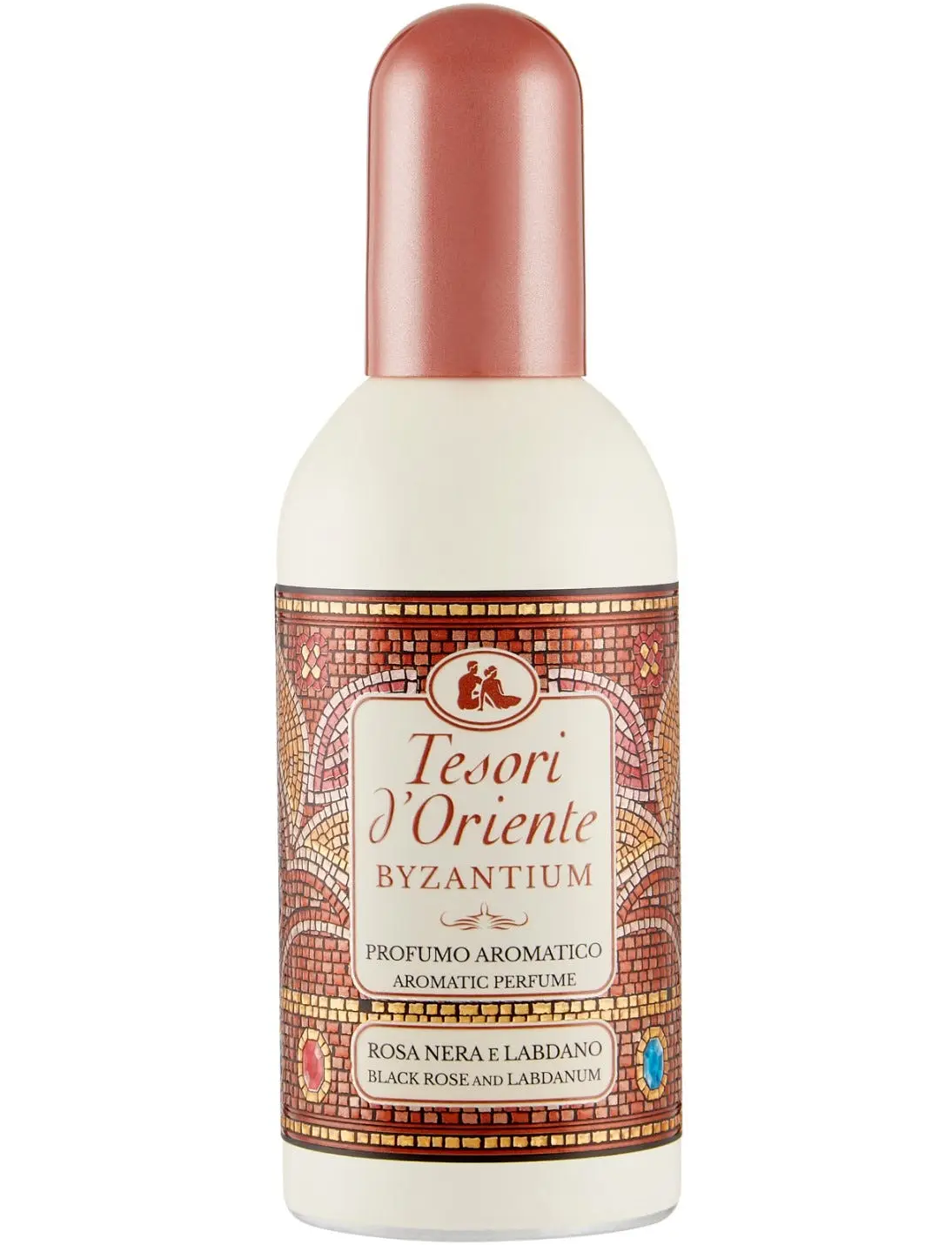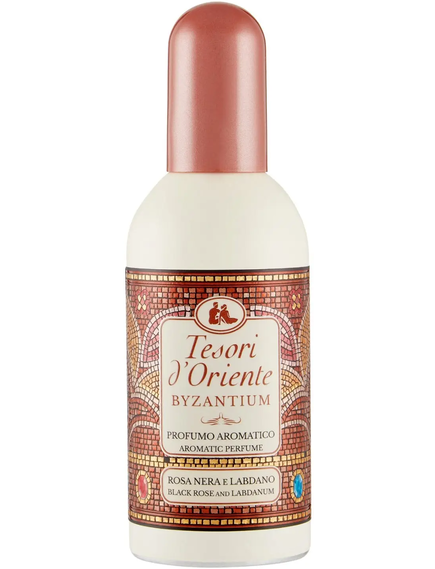Ароматний візантійський парфум огортає почуття та розум своїми теплими нотами лабдануму та чорної троянди, породжуючи чарівну та багатогранну сутність, як дорогоцінна візантійська мозаїка.