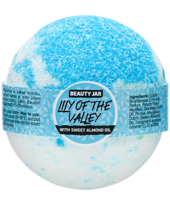 Двоколірна бомбочка для ванни з олією солодкого мигдалю та ароматом конвалії.