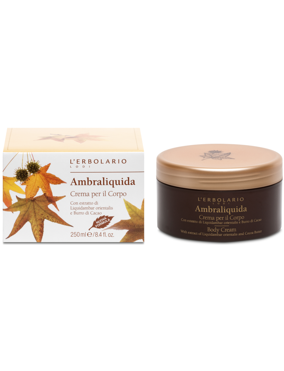 Саме в затишному лісі Liquidambar orientalis прибережний вітер, нешанобливий Мельтем, пробуджує своїм теплим подихом червоне та золоте листя, що спить на землі: з їхнім сухим ароматом він поєднує несподівані подихи меду та прянощів, вкрадених здалеку. базар. Так народився парфум Ambraliquida, переконливий аромат, який надає цьому крему для тіла всю свою візантійську ауру, в якій проявляються барвисті дари величезної землі Туреччини. Поряд із пом’якшуючими фісташковим і какао-маслами, ми знаходимо жовте золото живильних фісташкової і кунжутної олій, а також екстракти Liquidambar orientalis, які своїм янтарно-червоним відтінком захищають і тонізують епідерміс всього тіла.