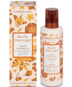 Лосьйон-Дезодорант Berries Flowers Woods. З екстрактами глоду, флердоранжу та кедрового дерева. Зроблено в Італії.