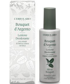 Лосьйон-дезодорант Срібний Букет. З екстрактами шавлії мускатної та ерики. Зроблено в Італії.