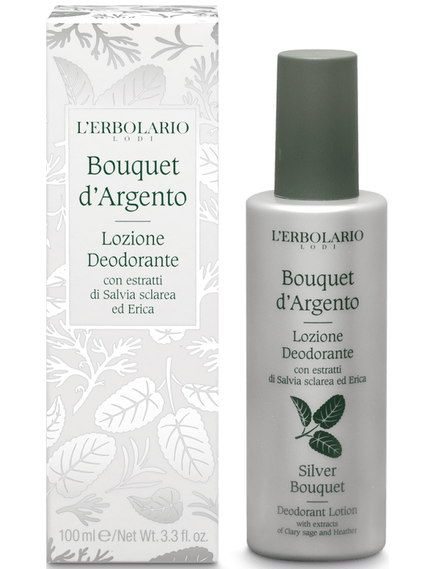 Поміж роботою, спортом і незліченними щоденними зобов’язаннями сьогодні, як ніколи, існує потреба в дезодоранті, який тримається довго та забезпечує свіжість і захист протягом усього дня. Так народилася формула цього спрею-лосьйону: букет рослин із сріблястим листям - шавлії, еріки, дженепі, лаванди, дуже цінні за тонізуючу та захисну дію ніжного епідермісу пахв - працює відповідно до рослинної активності. інгредієнти з доведеною ефективністю, такі як дезодоруючий фітокомплекс з кокоса та нейтралізуючий запах із хвоща та шавлії, здатні забезпечити свіже та тривале самопочуття. Щоб завжди почуватися легко та повно життєвих сил!