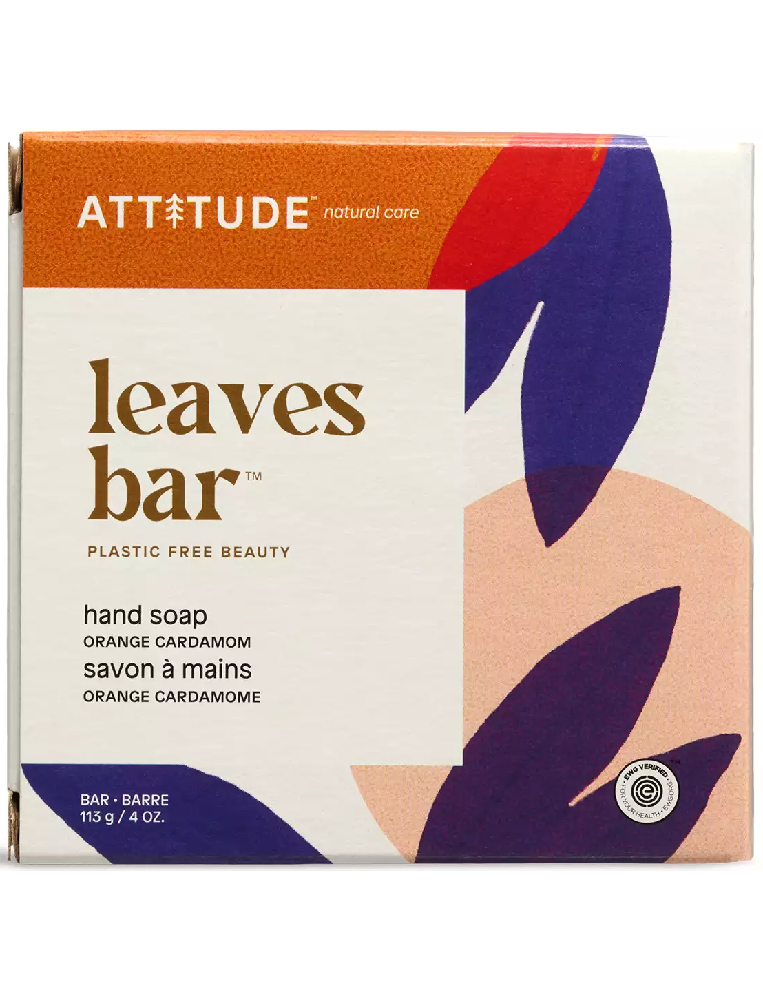 Наше нове тверде мило для рук ATTITUDE leaves bar™ без пластику з апельсином та кардамоном – це джерело поживних речовин, що дарує вам тривалу свіжість завдяки оксамитовій піні, яка очищає, не вбираючи вологу зі шкіри. Наше тверде мило, сертифіковане EWG VERIFIED™ та веганське, містить ультраживильні компоненти, такі як масло ши, яке відоме своєю здатністю відновлювати та заспокоювати суху шкіру, та олія авокадо, яка живить та покращує її зовнішній вигляд. Воно ідеально підходить для подорожей завдяки зручному розміру та безводній формулі. Крім того, вам сподобається сенсорний досвід насиченого, бадьорого аромату апельсина та кардамону. Мити руки ще ніколи не було так приємно!