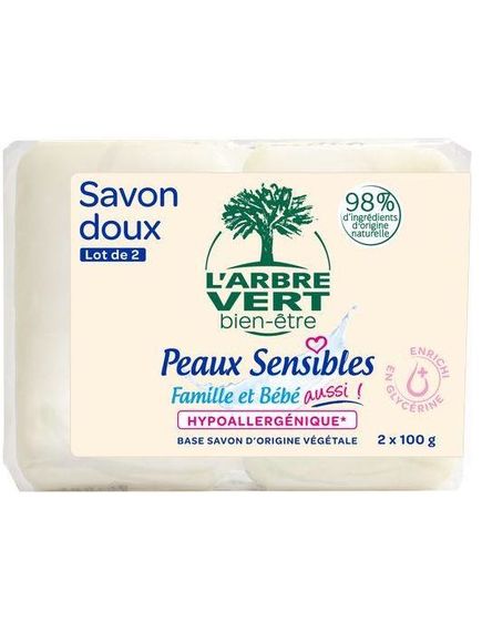 Тверде мило L'Arbre Vert із натуральним екстрактом солодкого мигдалю підходить для всієї родини. Традиційна форма чудово підходить, щоб зволожити шкіру та надати їй природну м'якість. Розроблене для людей і дітей із чутливою шкірою, схильної до проявів алергії. 95% натуральних інгредієнтів, гіпоалергенний, має нейтральний PH для шкіри й призначений для мінімізації ризику виникнення алергії. Має м'який аромат солодкого мигдалю, воно ідеально підходить для тих, хто віддає перевагу використовувати твердий формат — кускове мило.