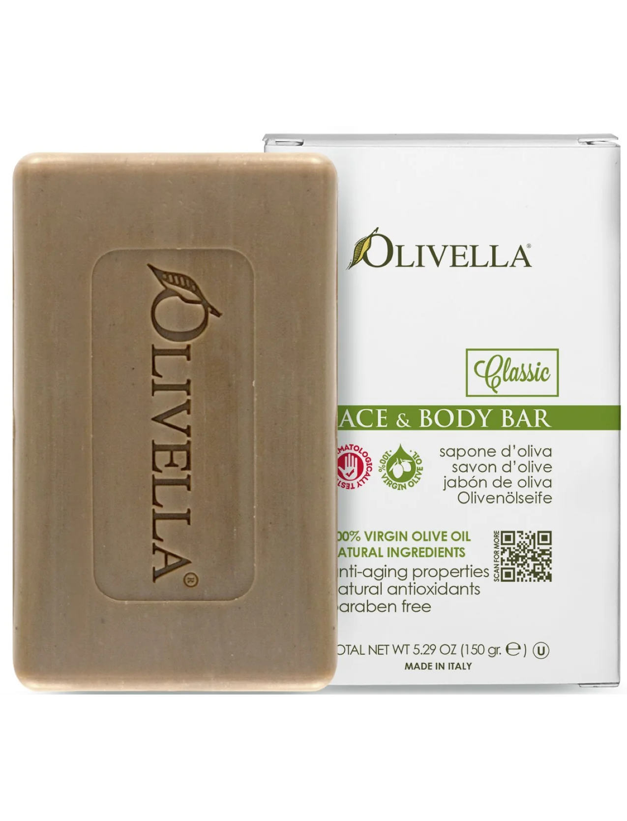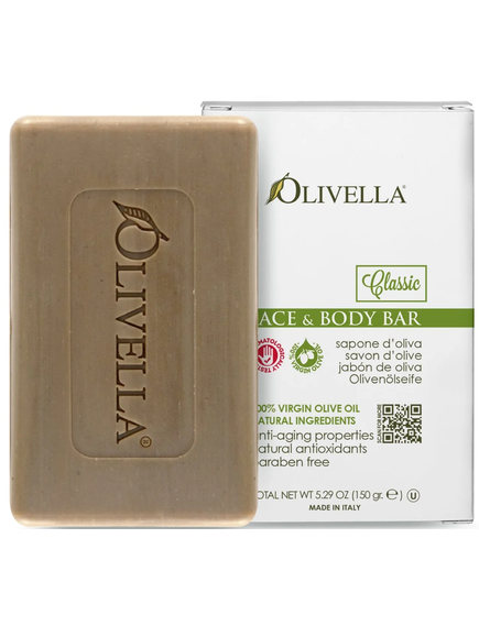 Мило OLIVELLA - це інноваційний натуральний продукт, виготовлений з 100% оливкової олії Virgin без застосування хімічних процесів, згубних для стероловой фракції і жирних кислот, що містяться в ньому. Не містить тваринних жирів, штучних хімікатів і барвників. Запатентована технологія дозволяє зберегти максимум корисних властивостей оливкової олії в кінцевому продукті без додаткових добавок! Завдяки своїм унікальним властивостям воно ідеально підійде для людей, які страждають алергією, висипанням на шкірі та екземою. Мило OLIVELLA може застосовуватися алергікам для чутливої шкіри в будь-якому віці, заспокоюючи ніжну шкіру немовлят або усуваючи сухість шкіри в похилому віці. Коричнево-зелений відтінок забезпечує хлорофіл з оливкової олії.