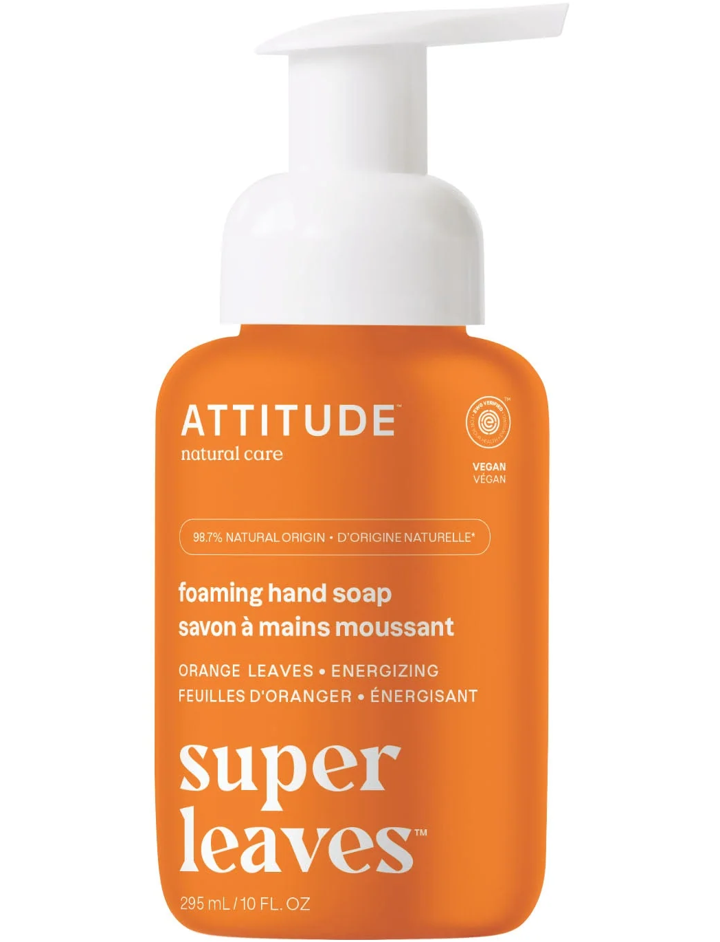Веганське енергетичне пінливе мило для рук ATTITUDE™ з нотками листя апельсина ніжно очищує ваші руки. Виготовлене з 98,7% інгредієнтів натурального походження*, включаючи екстракт листя апельсина, для відновлення еластичності шкіри та покращення її зовнішнього вигляду. Це мило, що пройшло дерматологічні випробування та збагачене крес-салатом та індійським крес-салатом для оживлення шкіри та підтримки її здоров'я. Його кремова піна усуває забруднення та перетворює миття рук на задоволення. Вам сподобається його квітковий аромат з нотками цвіту апельсина та евкаліпта.