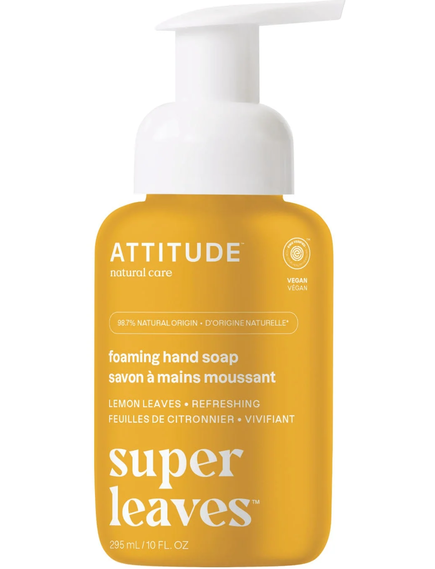 Веганське освіжаюче пінливе мило для рук ATTITUDE™ з листям лимона ніжно очищує ваші руки. Виготовлене з 98,7% інгредієнтів натурального походження*, включаючи екстракт листя лимона з бадьорими та антиоксидантними властивостями. Це мило, що пройшло дерматологічні випробування та збагачене крес-салатом та індійським кресом для оживлення шкіри та підтримки її здоров'я. Його кремова піна усуває забруднення та перетворює миття рук на задоволення. Вам сподобається його ніжний яблучний аромат з освіжаючими нотками огірка та Ерл Грей.