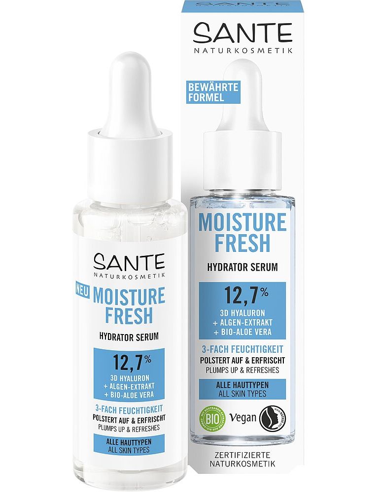 Натуральна ефективна сироватка з трьох активних інгредієнтів, яка забезпечує шкірі потрійне зволоження: Органічне алое вера + гліцерин: Освіжає шкіру та забезпечує інтенсивне зволоження. Гіалуронова кислота: Має високу здатність утримувати воду, тим самим відновлюючи пружність шкіри та зменшуючи дрібні зморшки. Інтенсивне зволоження. Наповнює та освіжає. Розгладжує шкіру. Зменшує дрібні зморшки. Надає рівного, свіжого кольору обличчя. Для інтенсивно зволоженої, освіженої та пружної шкіри.
